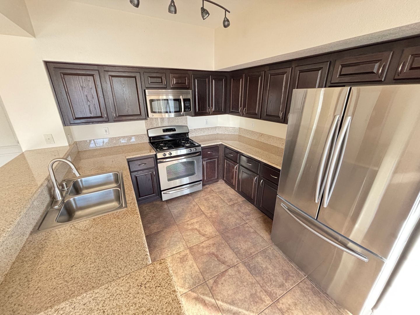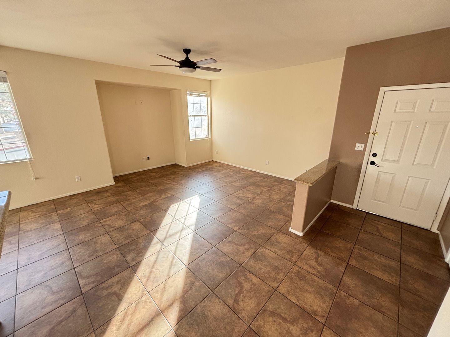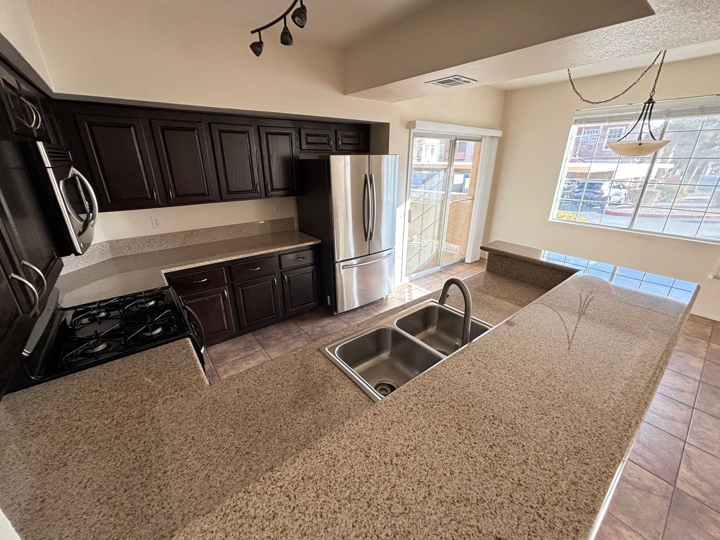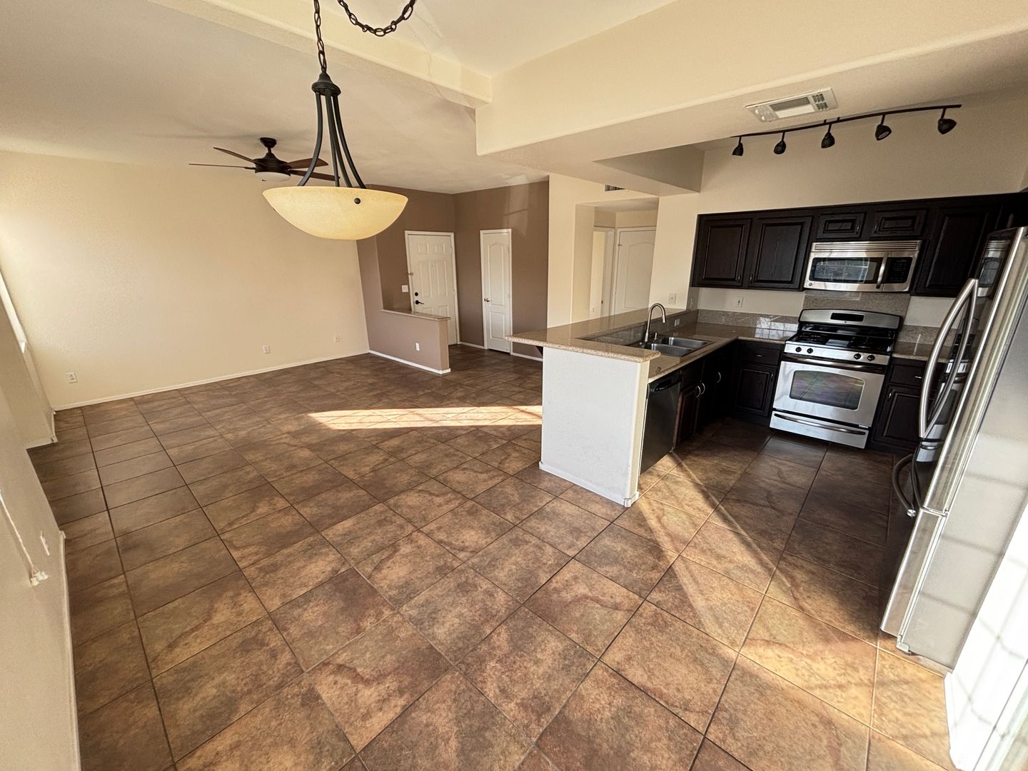 This home offers a spacious, welcoming atmosphere throughout. The kitchen is equipped with sleek stainless steel appliances, granite countertops, a breakfast bar, and contemporary track lighting. Enjoy the ease of tile flooring and ceiling fans in every room. The primary bedroom features a generous walk-in closet. Just minutes away from Summerlin, Desert Shores, shopping, and dining! The community offers exceptional amenities, including a pool, fitness center, and more. A tranquil retreat, perfect for relaxation and making it your own!